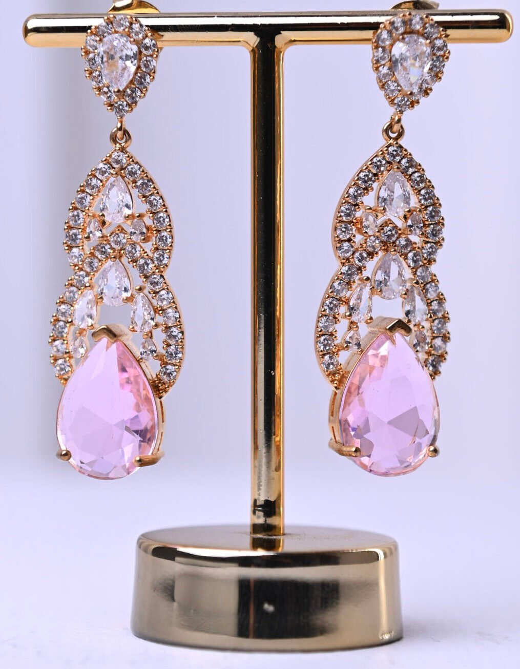 Brinco sofisticado com design em camadas, cravejado com zircônias e uma delicada gota em tom rosé que traz feminilidade e brilho na medida certa. Ideal para ocasiões especiais, festas e eventos noturnos, elevando qualquer produção com elegância.